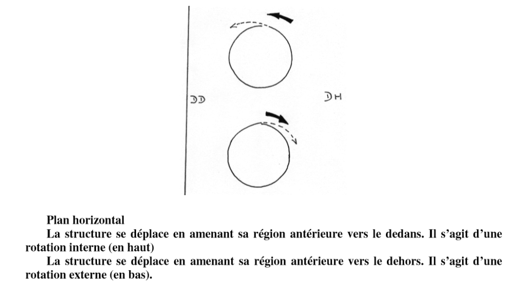 Pour les mêmes raisons, lorsqu’un os rapproche sa partie antérieure du plan sagittal et écarte sa partie postérieure, il convient de parler de rotation interne.