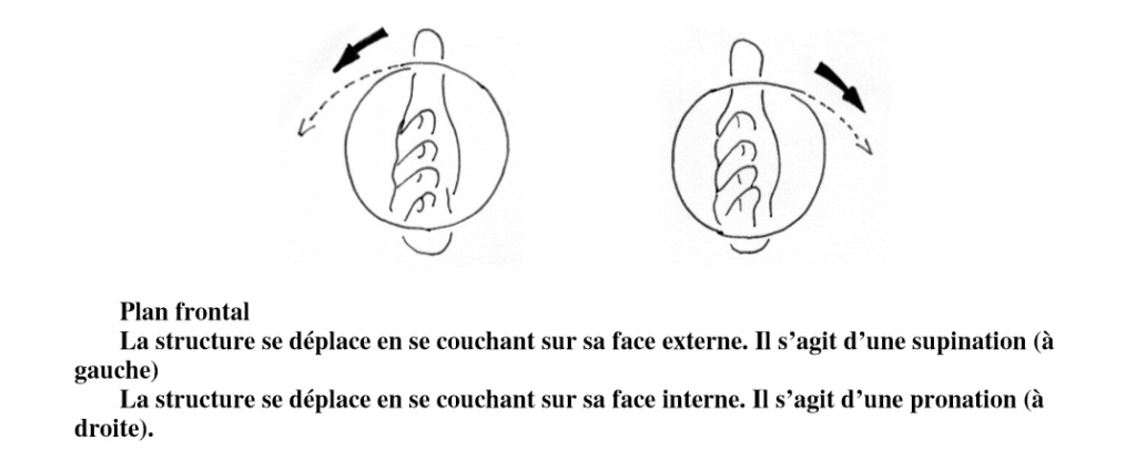 Enfin, lorsqu’un os s’incline sur sa face externe, il convient de parler de supination. Je fais ici référence à la position neutre d’un avant-bras, coude fléchi à angle droit et dont la main correspondante réalise ce même geste. Dans le cas contraire, il devient alors tout naturel de parler de pronation.